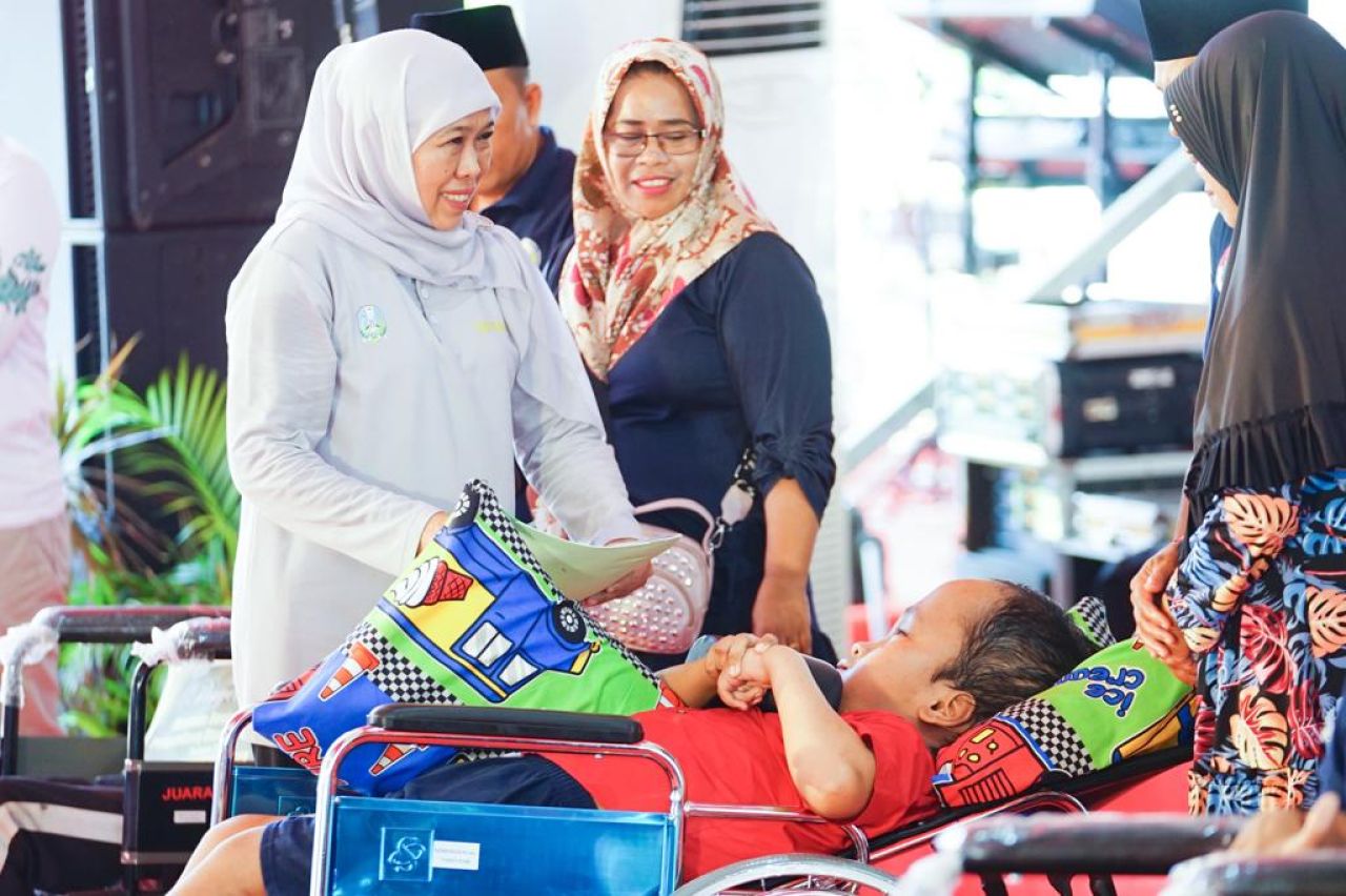selalu.id - Gubernur Jawa Timur Khofifah Indar Parawansa menyalurkan berbagai bantuan sosial (bansos) dan zakat produktif bagi masyarakat Sumenep, di Taman Merdeka Kalianget, Kab. Sumenep, Selasa (26/12).