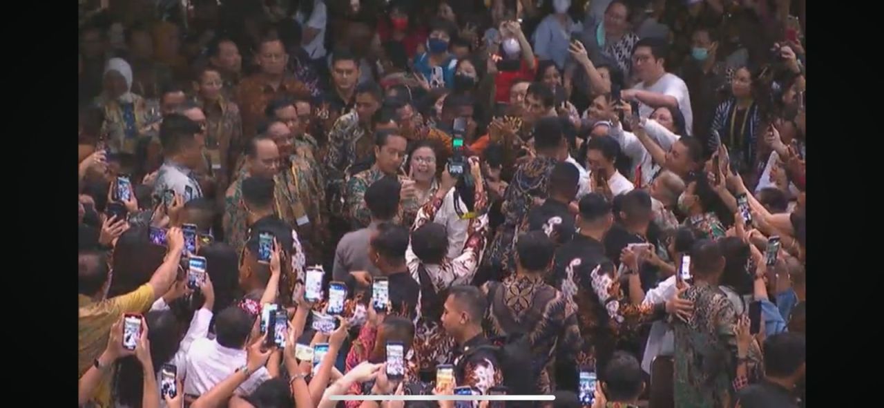 Kedatangan Jokowi pun didampingi sejumlah menterinya dan beberapa pejabat Pemerintah Daerah, di antaranya adalah Menteri Perdagangan (Mendag) Zulkifili Hasan, Menteri Kominfo Budi Arie Setiadi, Menteri Agama Yaqut Cholil Qoumas, Menpan Abdullah Azwar Anas, Menparekraf Sandiaga Uno. Menariknya, ada dua menteri yang merupakan saingan Pilpres 2024 yakni Menteri Pertahanan Prabowo Subianto dan Menkopolhukam Mahfud MD.