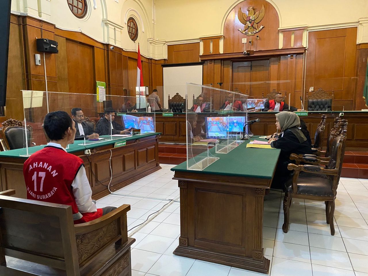 Sidang pembacaan vonis Roy ini digelar secara luring di ruang sidang cakra Pengadilan Negeri (PN) Surabaya dipimpin Hakim Ketua I Ketut Kimiarsa, Kamis (4/1/2024).