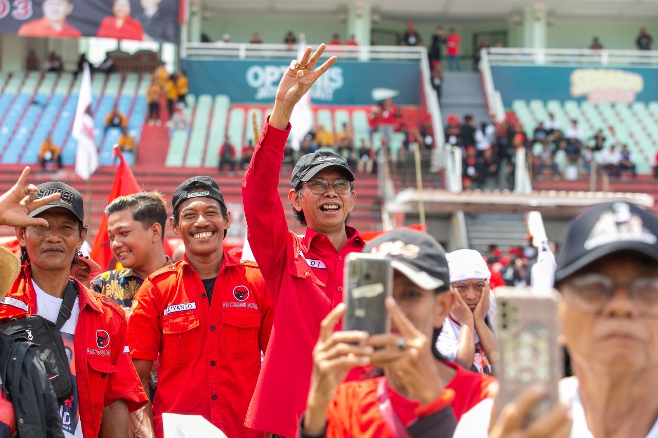 selalu.id - Ribuan kader PDI Perjuangan Kota Surabaya antusias dan penuh semangat mengikuti kampanye akbar Hajatan Rakyat yang dihadiri Calon Presiden Ganjar Pranowo di Stadion Delta Sidoarjo, Minggu (21/1/2024).