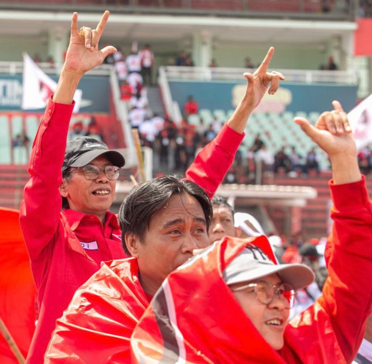 Berangkat dari titik kumpul di masing-masing 31 kecamatan di Surabaya, massa berbondong-bondong menuju Stadion Delta Sidoarjo. Cuaca panas menyengat, semakin membuat bersemangat para kader banteng.