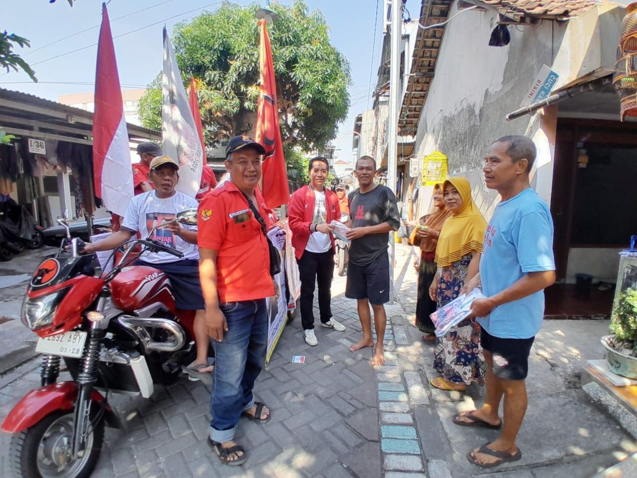 Di Sukolilo, bersama para kader PDIP dan relawan, dibagikan beragam Alat Peraga Kampanye berupa kaus, pamflet, contoh surat suara, stiker, dan sebagainya. Kampanye menyusuri kampung dengan pengeras suara ini dalam bahasa setempat disebut “ledangan”.