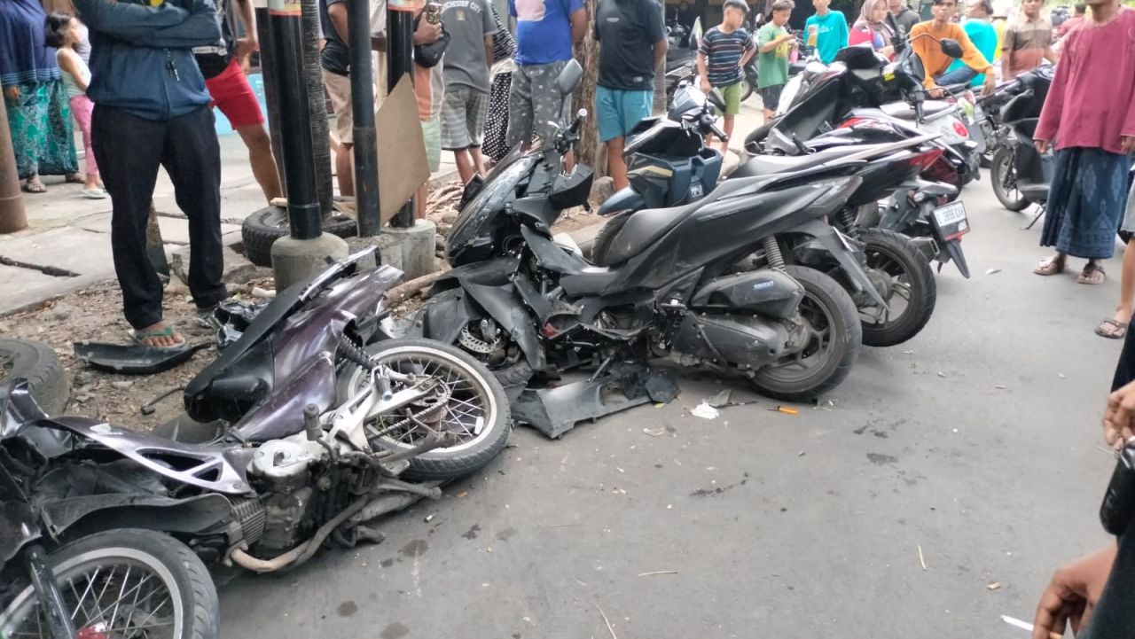 selalu.id - Sebuah ambulans menabrak sejumlah motor yang sedang terparkir di Jalan Sidotopo, Surabaya, Minggu (25/2/2024). Disebutkan, ambulans yang melarikan diri setelah menabrak tersebut berlogo Partai Demokrat.