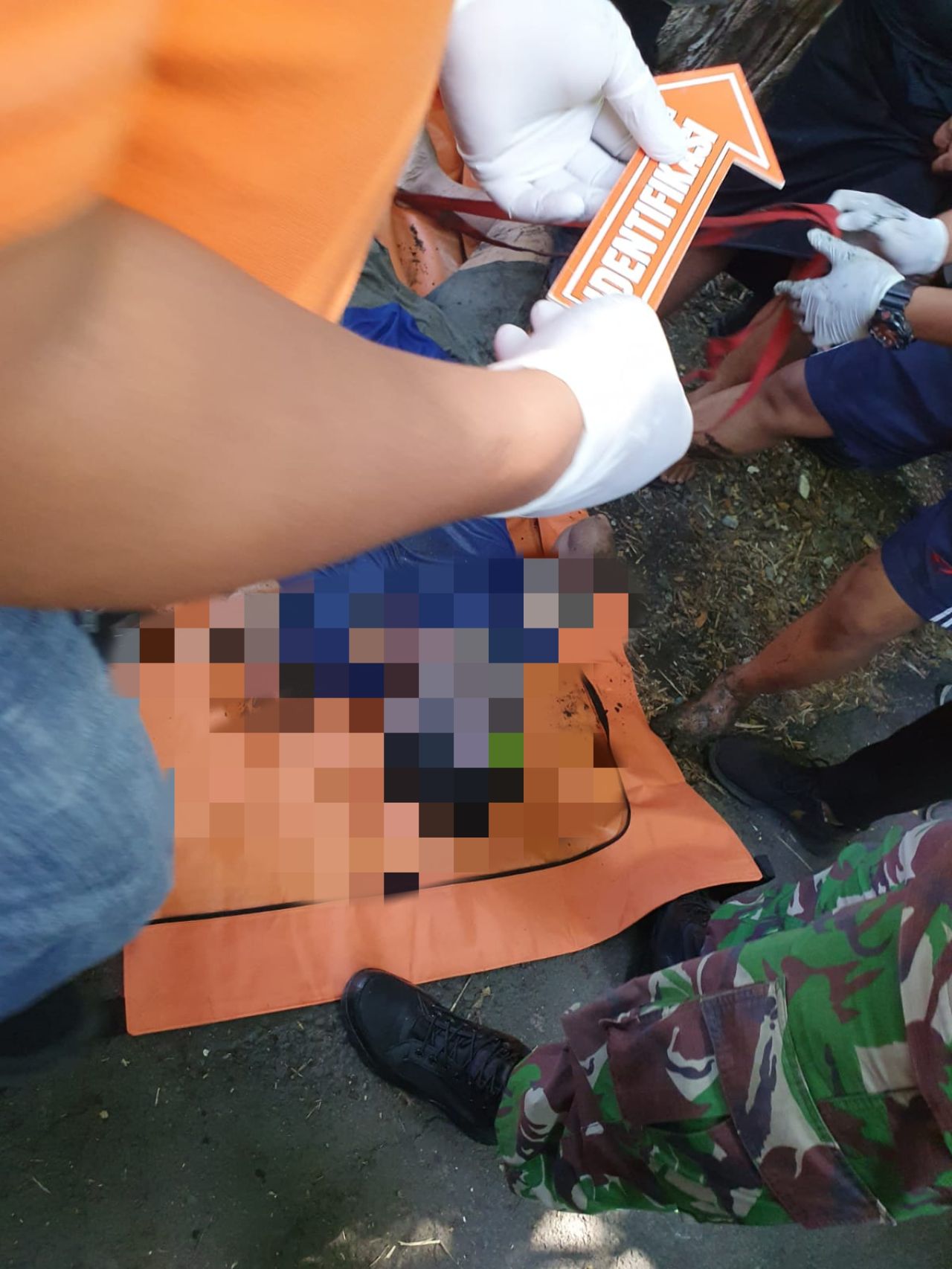 “Ciri-ciri (jenazah) memakai kaos oblong warna biru dan celana pendek warna abu-abu,” jelasnya.