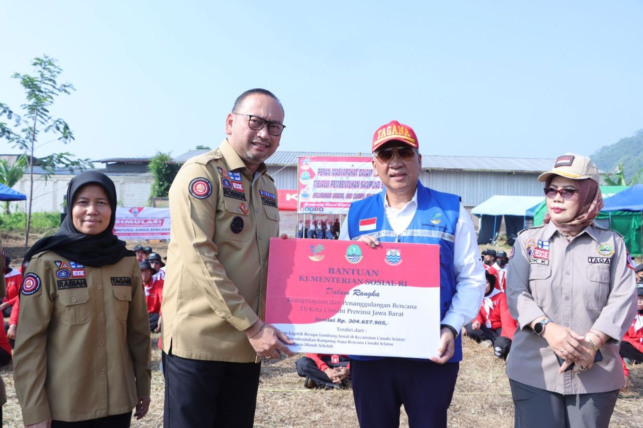 Pada kesempatan itu , Kemensos salurkan bantuan dalam rangka kesiapsiagaan dan penanggulangan bencana di Kota Cimahi berupa lumbung sosial di Kecamatan Cimahi Selatan, Fasilitas pembentukan KSB dan Fasilitas Tagana Masuk Sekolah (TMS) senilai Rp. 304.657.905.