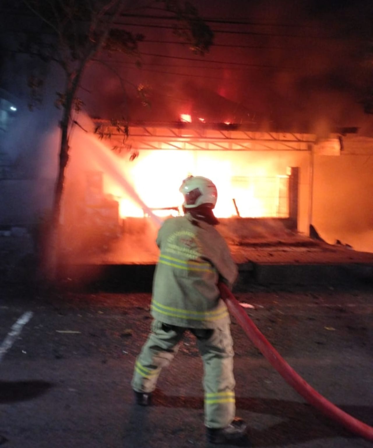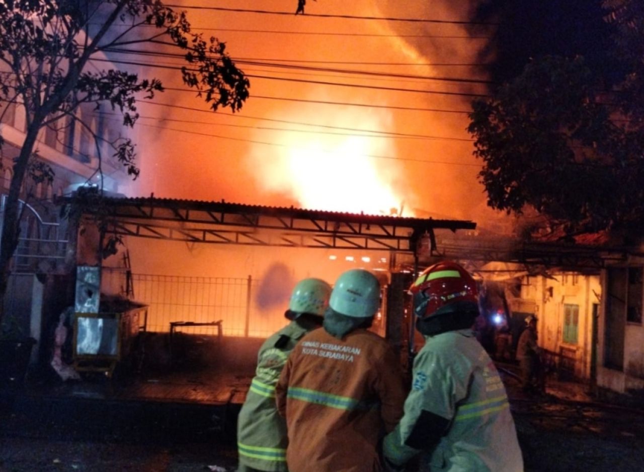 Mendapat laporan adanya kebakaran pada pukul 20.09 WIB, tim Damkar Unit Tempur Rayon 1 Pasar Turi tiba di lokasi sekitar pukul 20.11 WIB dan langsung melakukan penanganan pada kebakaran rumah usaha seluas 20x40 meter tersebut.