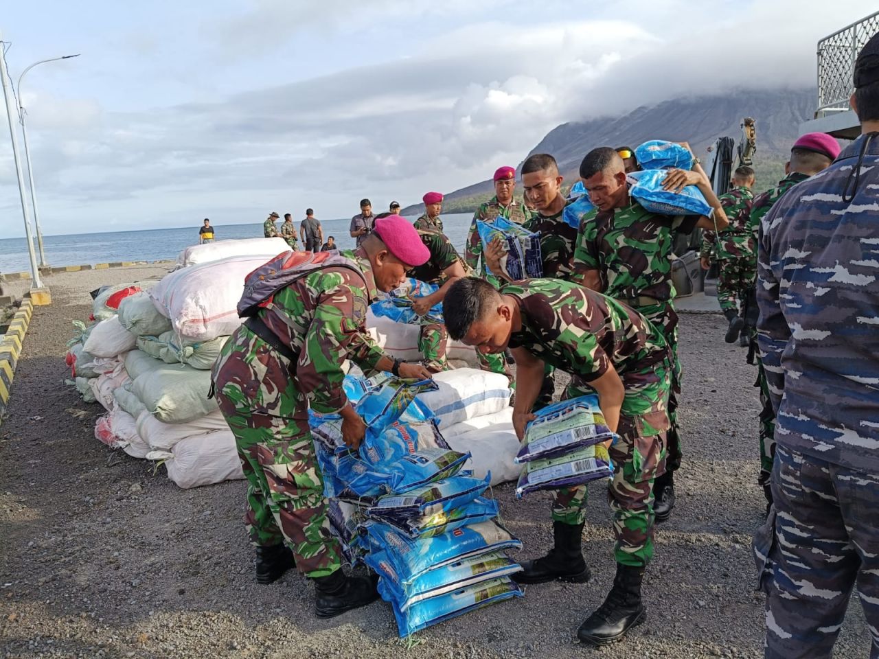 Devario menambahkan setibanya di pelabuhan di Pulau Tagulandang, bantuan logistik diangkut hingga lokasi pengungsian yang berjarak sekitar 5 km. Pengangkutan dibantu dengan menggunakan kendaraan milik masyarakat setempat secara swadaya.