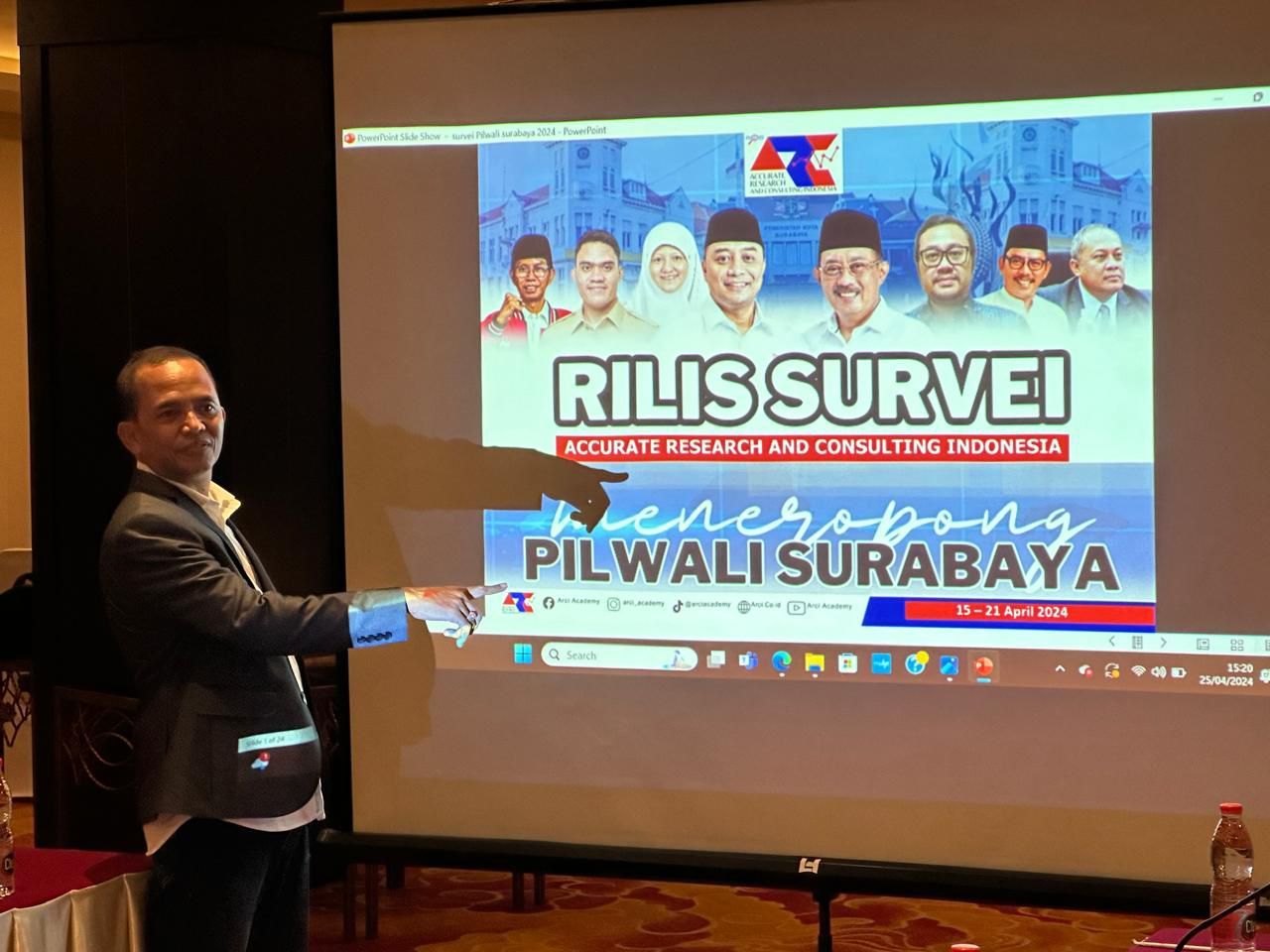 selalu.id - Accurate Research And Consulting Indonesia (ARCI) merilis hasil survei elektabilitas jika Eri Cahyadi-Armjui pecah kongsi dalam kontestasi Pemilihan Wali (Pilwali) Kota Surabaya 2024.