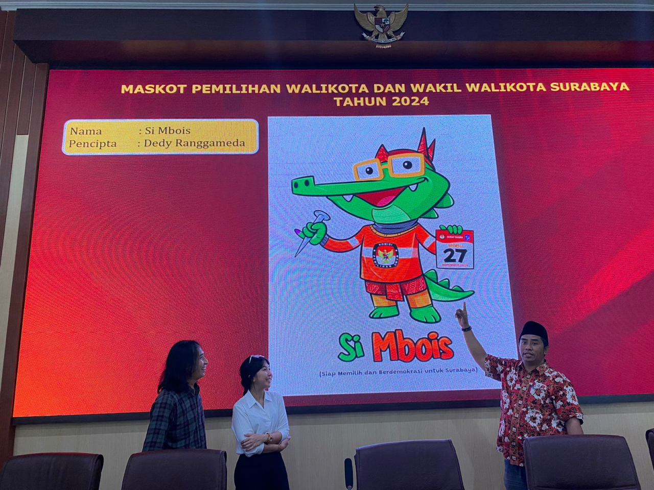 Si Mbois ini, kata dia, merupakan karakter buaya yang menjadi ikon Kota Surabaya. Karakternya, semangat, ramah, dan bijaksana.