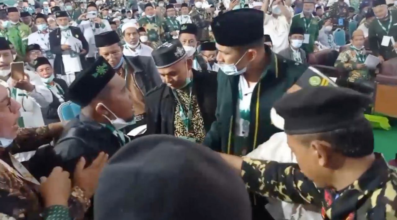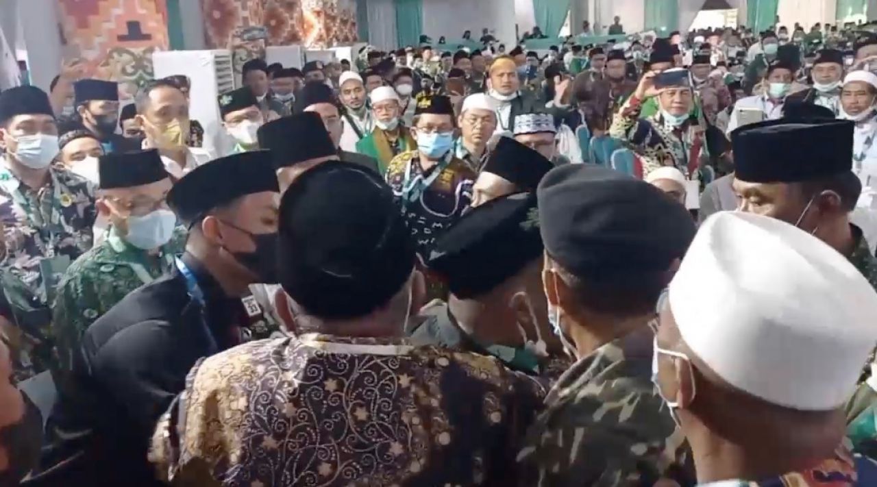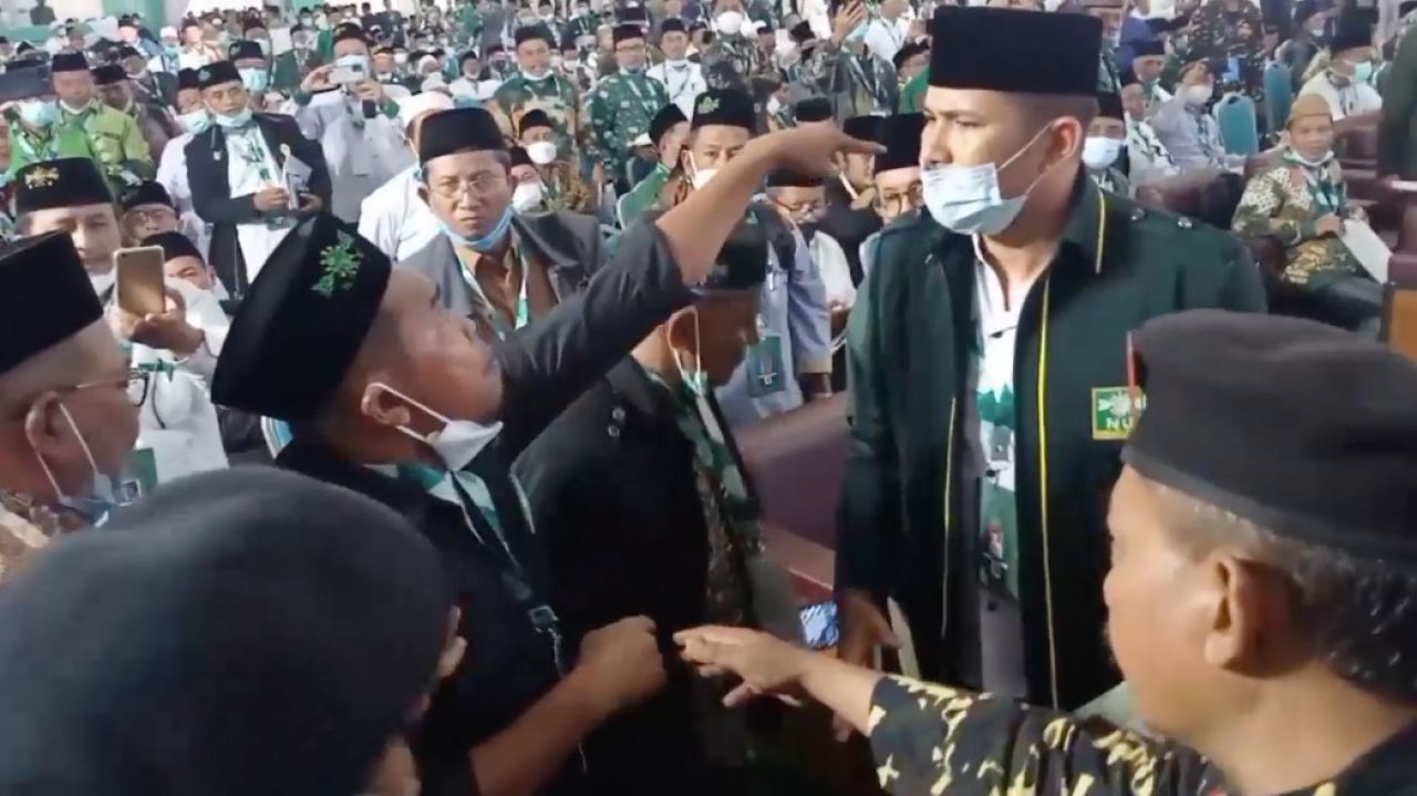 Baru memasuki sidang pleno pertamanya, kericuhan sudah terjadi dalam muktamar ke-34 Nahdlatul Ulama yang berlangsung di gedung serbaguna Universitas Islam Negeri Raden Intan Bandar Lampung, Lampung, Selasa sore (22/12/2021).