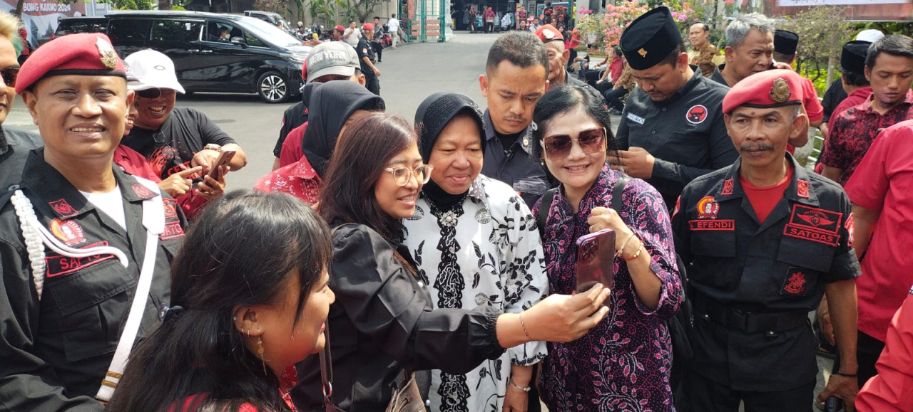 selalu.id - Hadirnya Mensos Risma di acara Haul Bung Karno ke-54 di Blitar menjadi daya tarik tersendiri bagi masyarakat, Jumat (21/6/2024). Masyarakat Blitar terutama ibu-ibu berebut foto bersama mantan Wali Kota Surabaya tersebut.