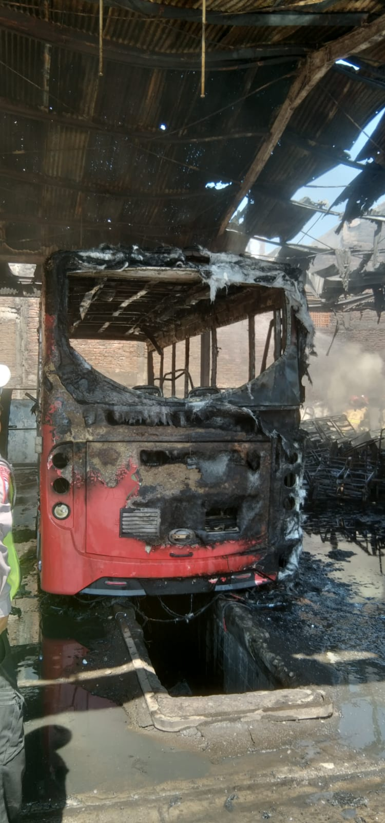 Sebuah fotopun didapatkan selalu.id yang menunjukkan situasi di dalam Pool Damri tersebut. Terlihat bus berwarna merah telah hangus terbakar dan sebagian bodi bus telah jadi abu.