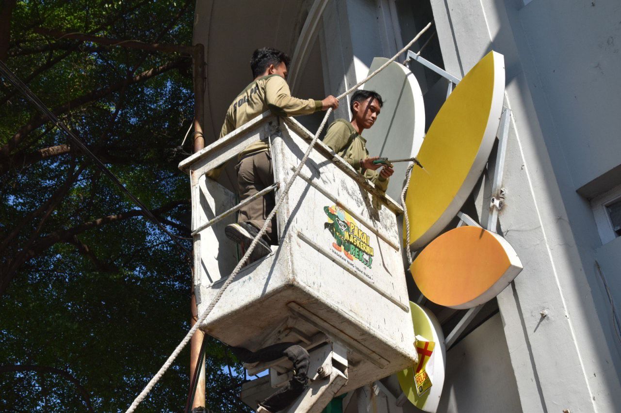 Satpol PP Surabaya Tertibkan Reklame Tak Berizin, 20 Unit Berhasil Dicopot