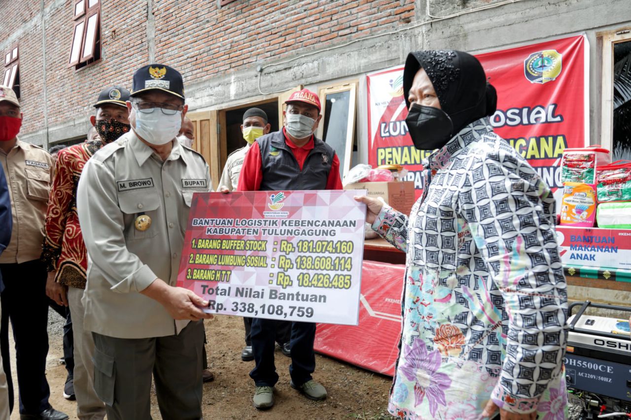 selalu.id - Menteri Sosial Tri Rismaharini mengisi libur Hari Natal dengan menjalankan tugas ke wilayah Selatan Jawa Timur. Rombongan bergerak pagi hari dari Surabaya, dan tiba di Desa Kebo Ireng, Kecamatan Campur Darat, Kabupaten Tulungagung siang hari, Sabtu (25/12/2021).