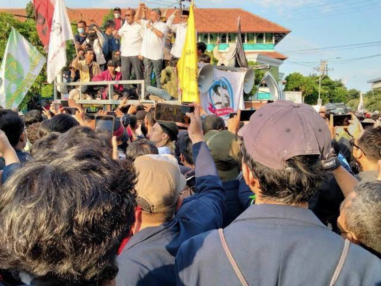 Aksi ini sempat menutup Jalan Indrapura dan berlangsung selama sekitar tiga jam setelah salat Jumat. Meski sempat diwarnai insiden lemparan botol air minum, dorong-mendorong, dan berbagai umpatan, situasi tetap relatif kondusif.