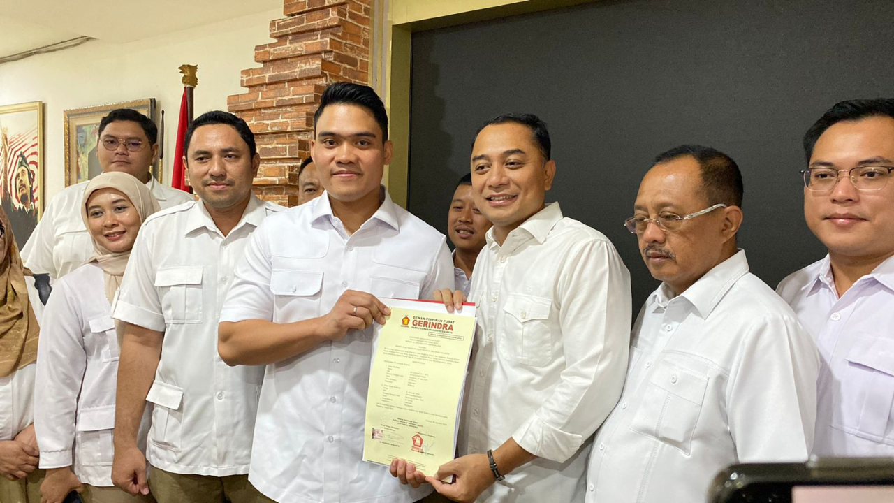 Surat B1-WK itu diberikan langsung pengurus partai Gerindra kepada Petahana Eri-Armuji di Kantor DPD Gerindra Jatim, Jalan Gayung Sari, Surabaya, Selasa (27/8/2024).