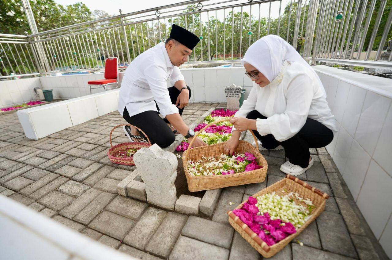 selalu.id - Momen pendaftaran sebagai calon Wali Kota Surabaya menjadi momen mengharukan bagi Eri Cahyadi. Di pendaftaran untuk periode kedua kepemimpinannya ini, ayahanda Eri Cahyadi, Urip Suwondo, dan ayah mertua, Dadang Djumena, tak lagi mendampingi dan memberinya restu. Keduanya berpulang pada 2023 dan 2022 saat Eri menjadi wali kota. Karena itu, sebelum semua proses pendaftaran ke Komisi Pemilihan Umum (KPU) Kota Surabaya, Rabu (28/8/2024), Eri mengawalinya dengan ziarah ke makam kedua almarhum di TPU Tembok Gede, Bubutan.