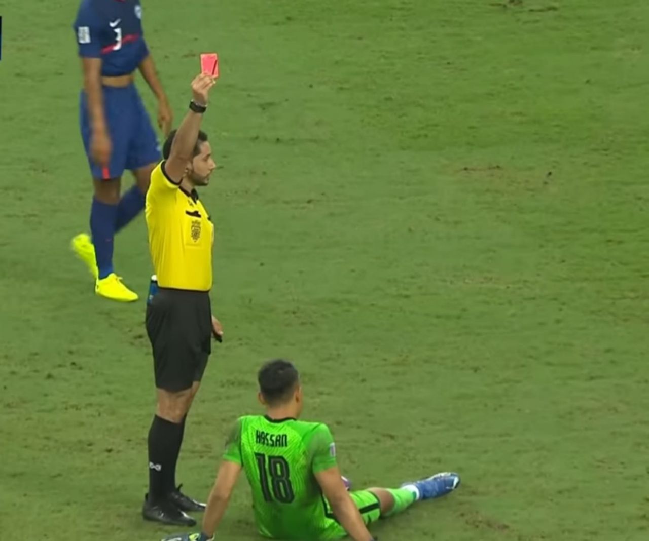 Menjelang laga perpanjangan berakhir,Singapura harus bermain dengan 8 pemain setelah pahlawan Singapura, kiper Hassan Sunny dikartu merah setelah melanggar Irfan Jaya.