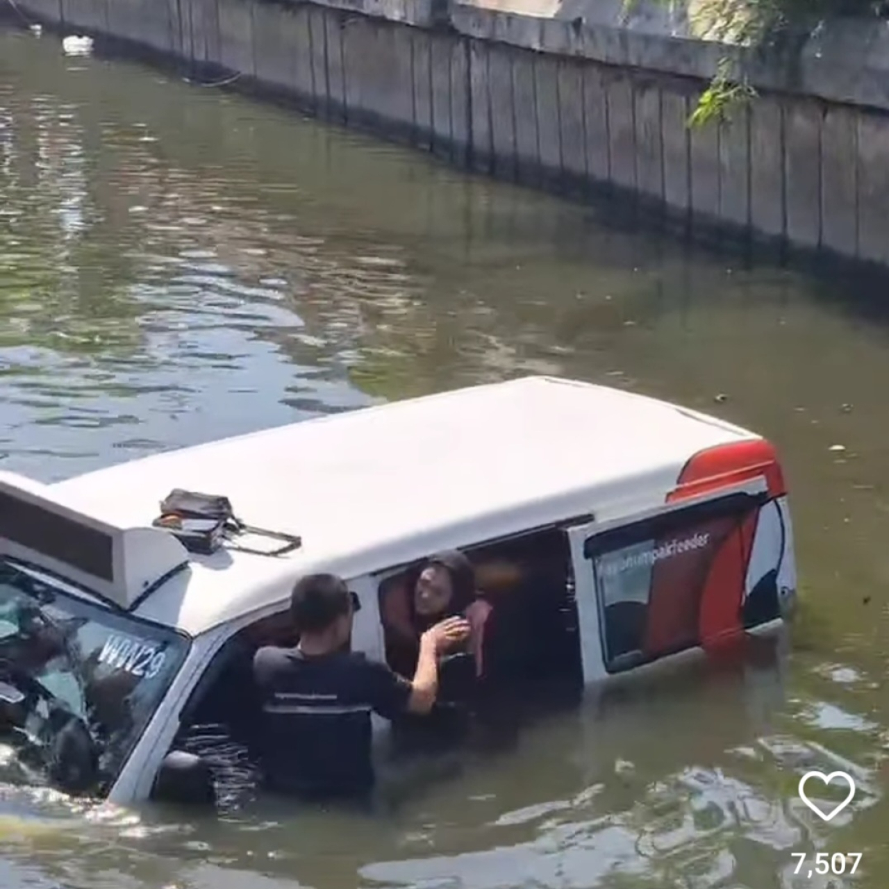 Kejadian itupun terekam kamera amatir warga dan kemudian diunggah ulang oleh akun instagram ILoveSuroboyo. Dalam unggahan tersebut diketahui bahwa diduga supir mengantuk dan kemudian banting stir ke arah sungai.