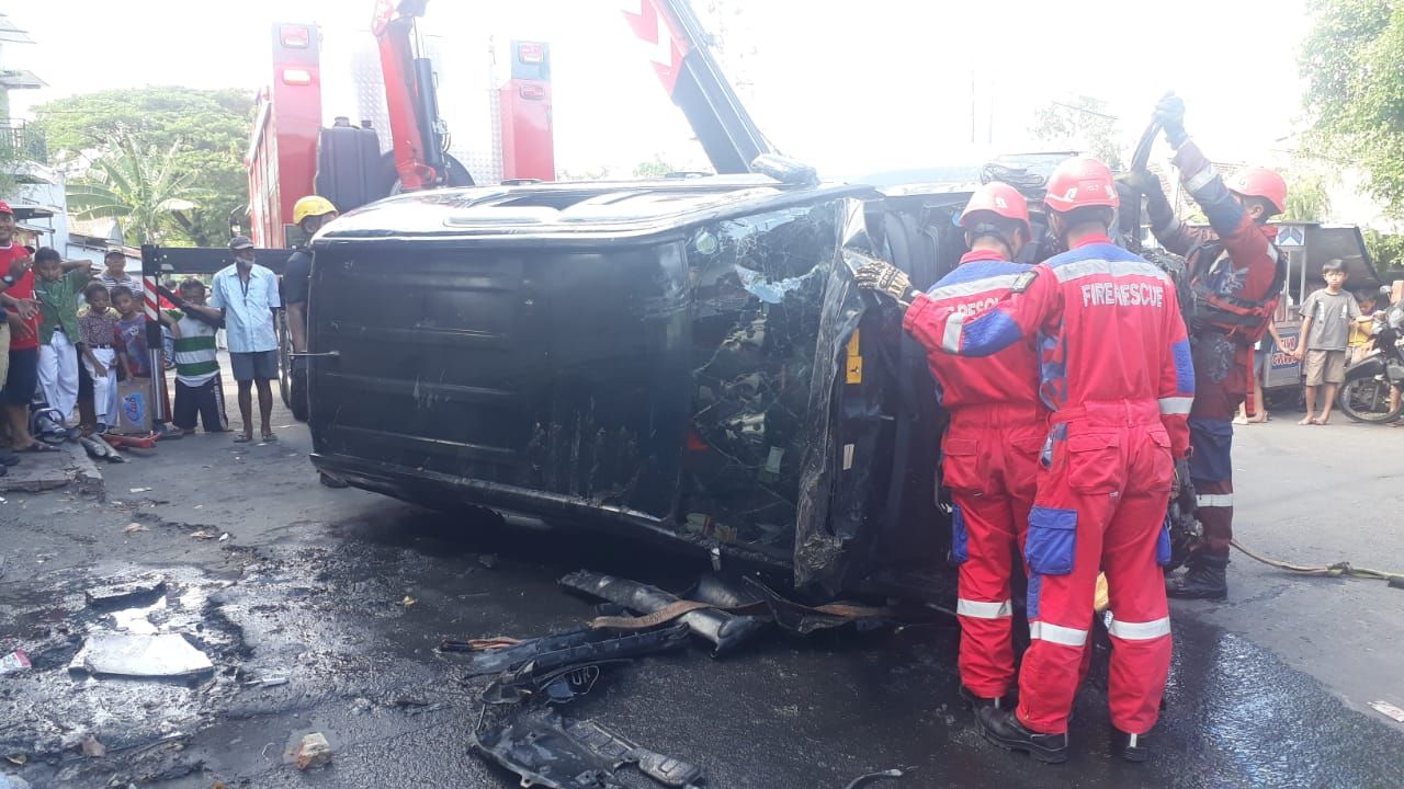 selalu.id - Petugas rescue sempat kuwalahan dalam proses evakuasi mobil Honda CR-V bernopol DR 1552 BO yang terjebur usai menyerempet wanita dan menabrak pagar pembatas serta menabrak sepeda motor yang terparkir disisi jembatan di jalan raya Mulyorejo, Surabaya Timur.