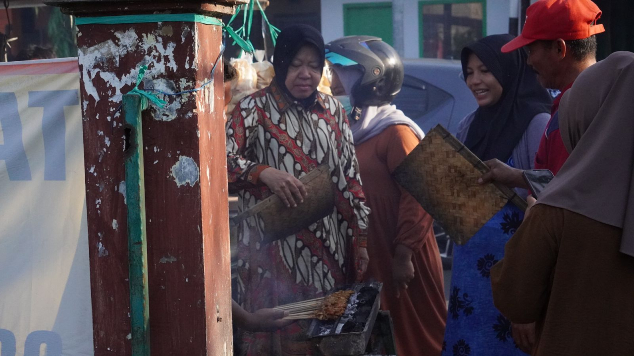 Tak lama berselang, mantan Menteri Sosial ini juga menghampiri penjual sate yang berada tepat di seberang sebelumnya. Risma bahkan menganjurkan pedagang sate ini buka lebih lama hingga siang, bukan hanya waktu pagi hari.