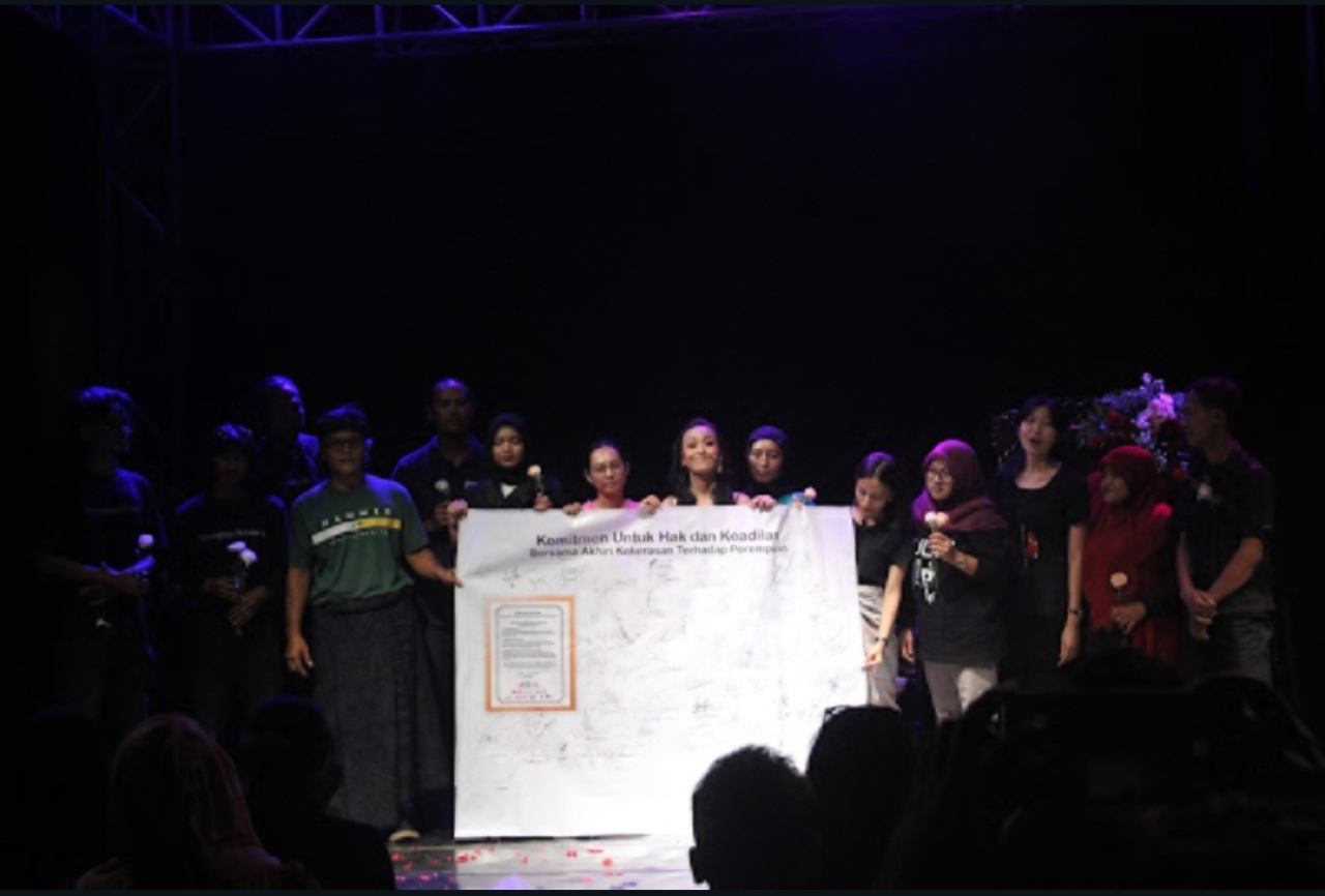 Gedung Nasional Indonesia (GNI) Surabaya, Minggu (1/12) malam pun menjadi saksi digelarnya dua artikulasi pemikiran para seniman tersebut yang dihadirkan secara intens dan inklusif ke hadapan publik, utamanya bagi perempuan Surabaya.