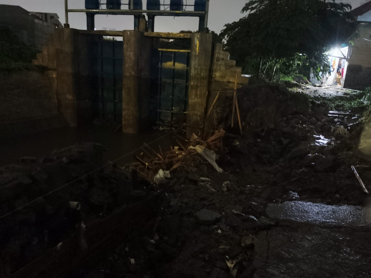 Insiden yang terjadi pukul 15.30 WIB ini menyebabkan banjir setinggi roda sepeda motor dan merendam permukiman warga sekitar.