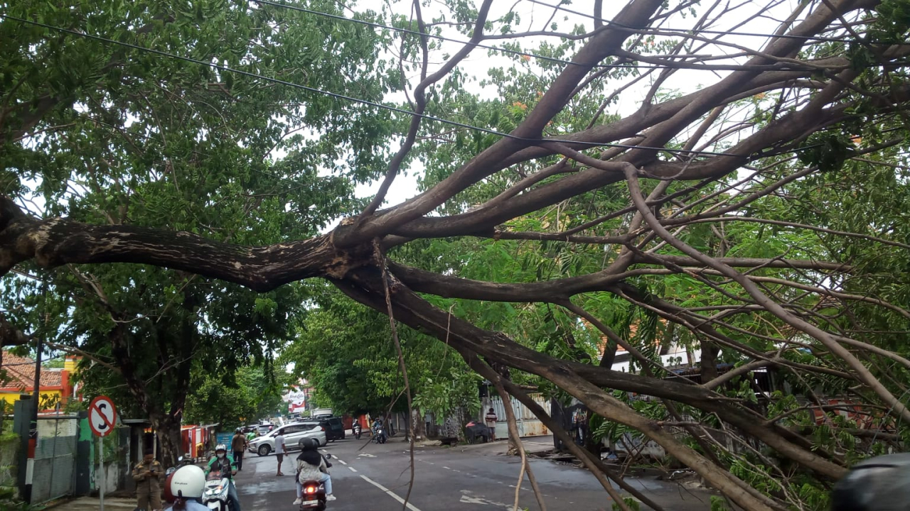 Pohon Tumbang di Jalan BKR Pelajar Surabaya Lumpuhkan Arus Lalu Lintas