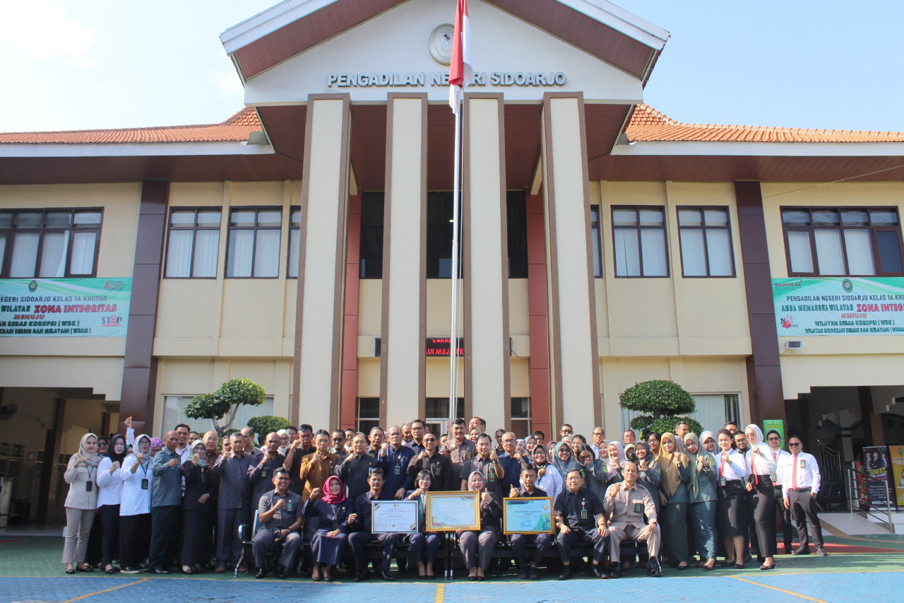 Tak kalah panting, Pengadilan Negeri Sidoarjo juga mendapatkan Penghargaan Pembangunan Sistem Manajemen Anti Penyuapan (SMAP) dengan predikat "B" dan nilai 78,17. Penghargaan ini mengapresiasi komitmen pengadilan negeri Sidoarjo dalam menerapkan prinsip anti-korupsi dan menjaga integritas dalam setiap aspek pelayanan publik yang diberikan, menunjukkan bahwa lembaga ini serius dalam memerangi penyuapan dan praktik tidak transparan.