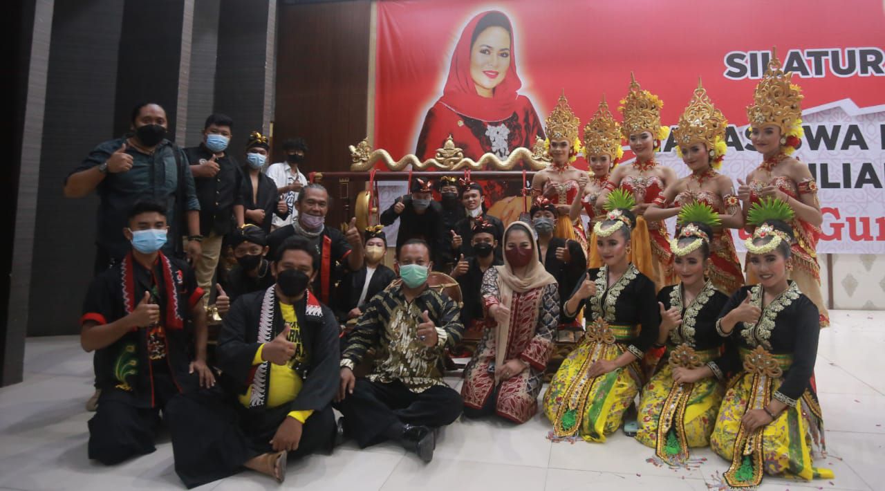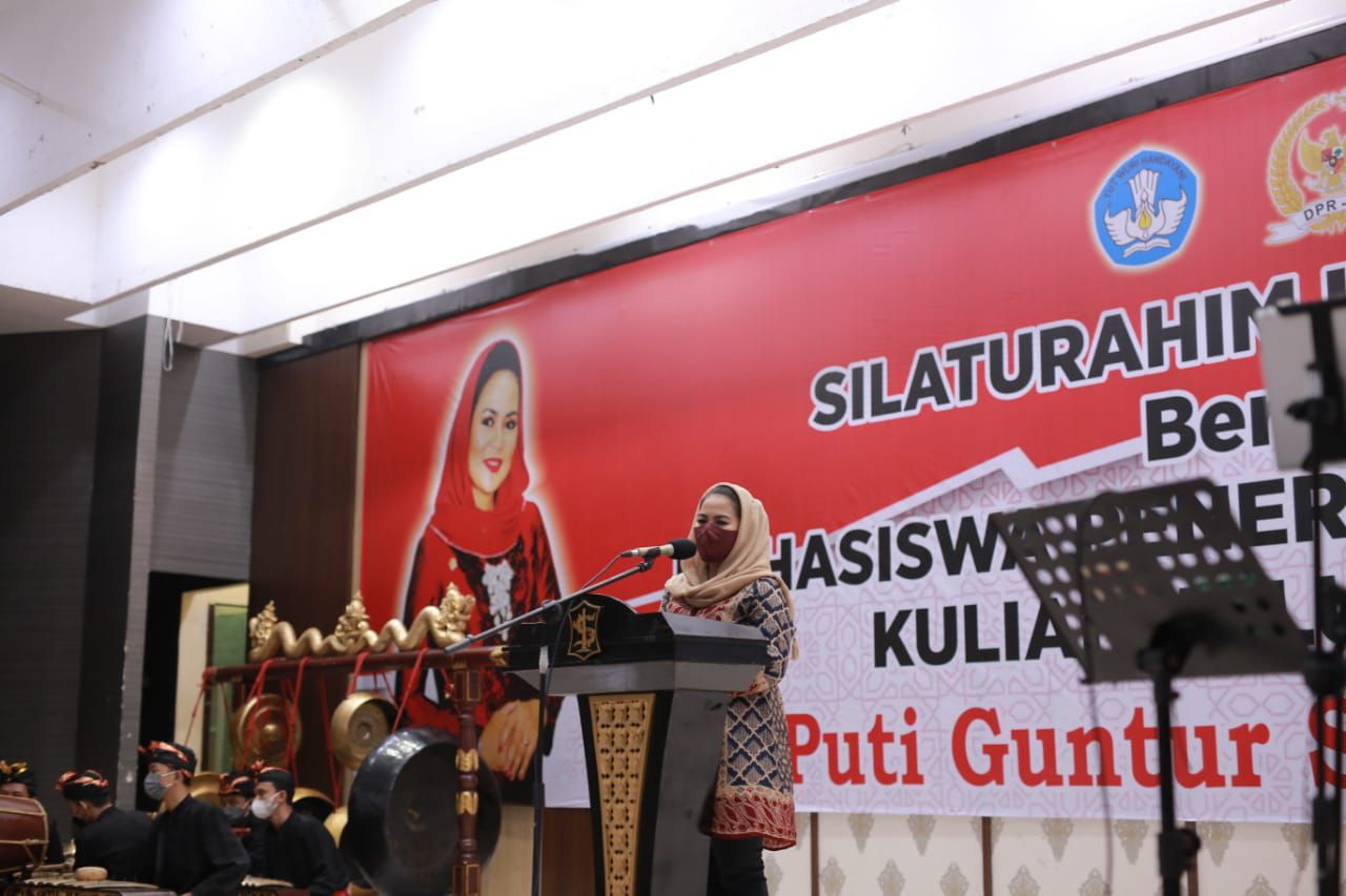 selalu.id - Anggota komisi X DPR RI Puti Guntur Soekarno menggelar silahturahim kebangsaan bersama 450 mahasiswa penerima beasiswa Kartu Indonesia Pintar (KIP) dari kuliah jaring aspirasi serta perkumpulan rumah budaya di Gedung Wanita, Surabaya, Rabu (5/1/2022).