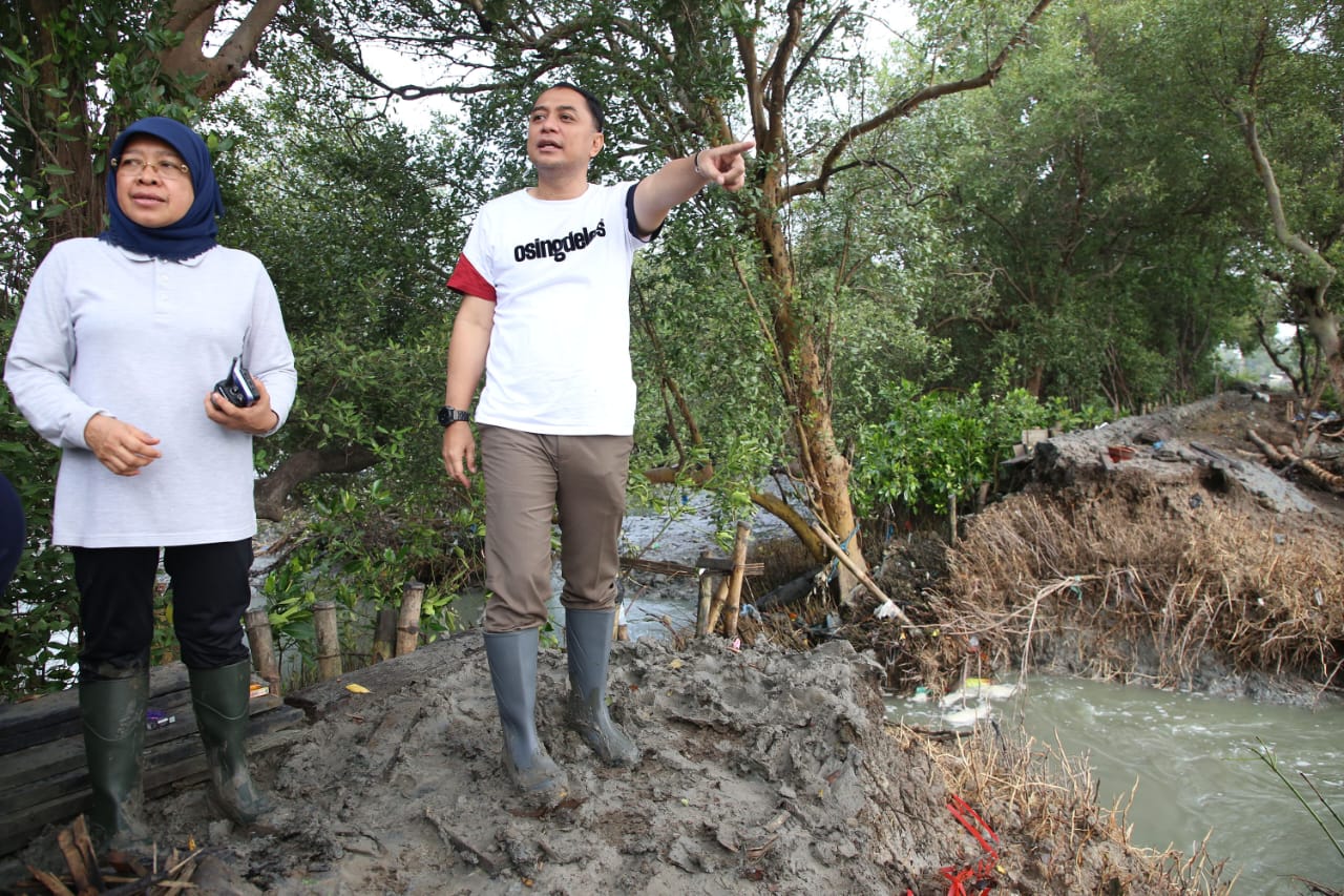 “Ada tiga titik tanggul yang jebol. Sebenarnya bukan murni jebol, melainkan dilubangi oleh petani tambak untuk membuat laban (irigasi). Sayangnya, sebelum pengerjaan selesai, air rob datang,” jelas Wali Kota Eri di lokasi.