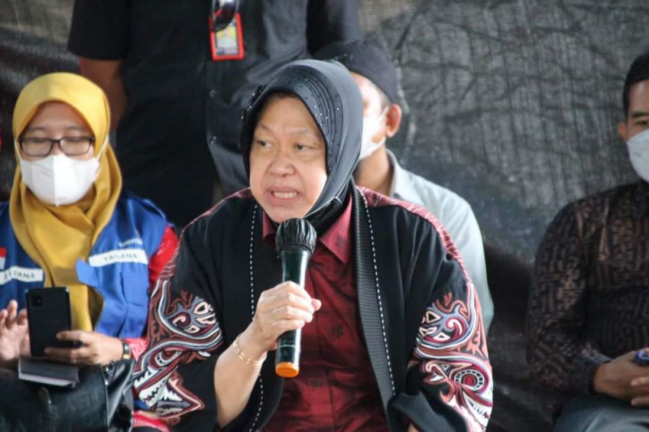 selalu.id - Menteri Sosial Tri Rismaharini melakukan kunjungan ke Desa Atap, Kecamatan Sembakung, Kabupaten Nunukan, Kalimantan Utara (Kaltara) meninjau wilayah yang terendam banjir pada Minggu 9 Januari 2022.