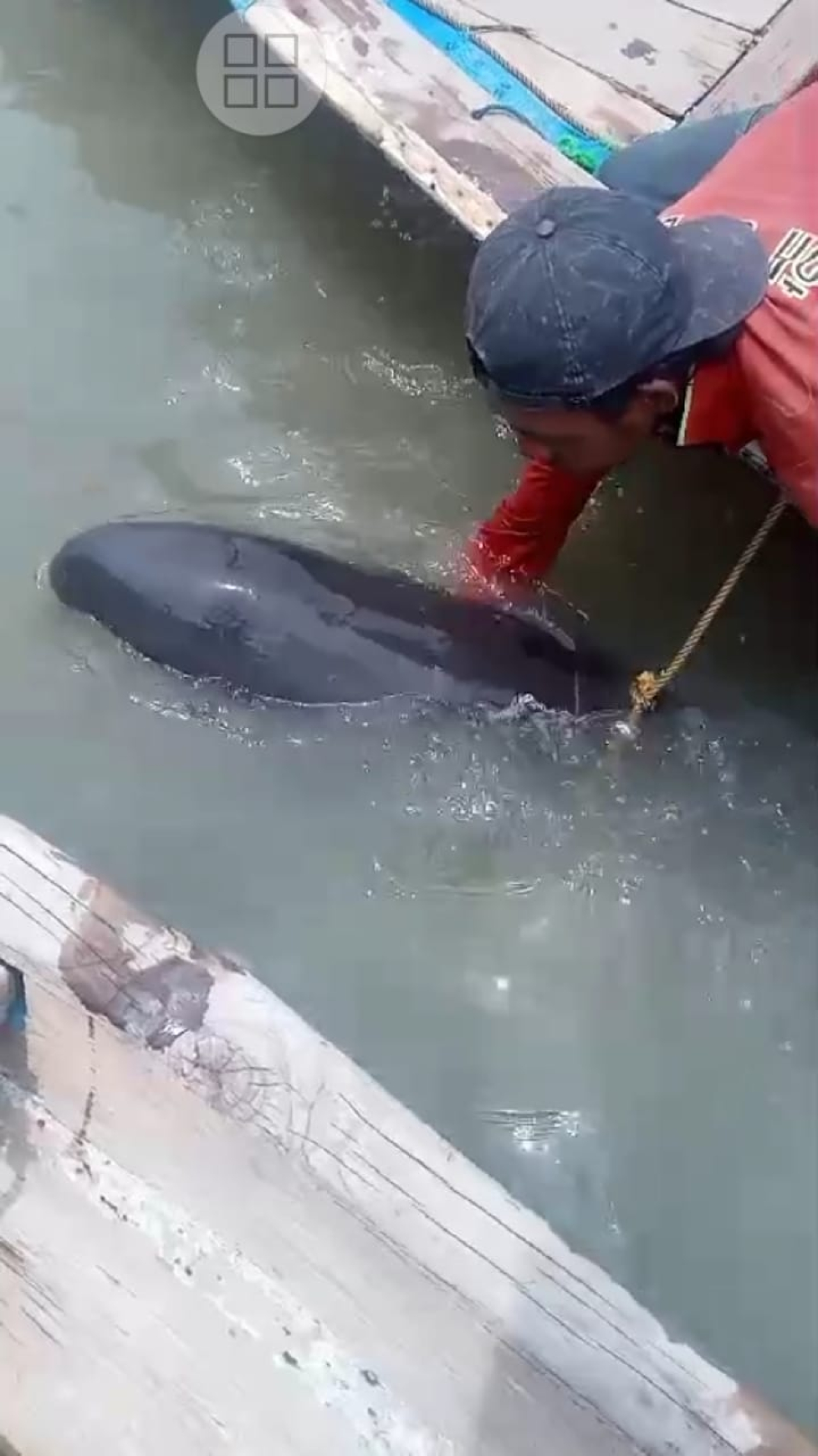 Para nelayan terus berupaya menyelamatkan lumba-lumba tersebut menggunakan perahu kecil dan sejumlah alat bantu untuk memindahkan lumba-lumba ke perairan yang lebih dalam dan aman.