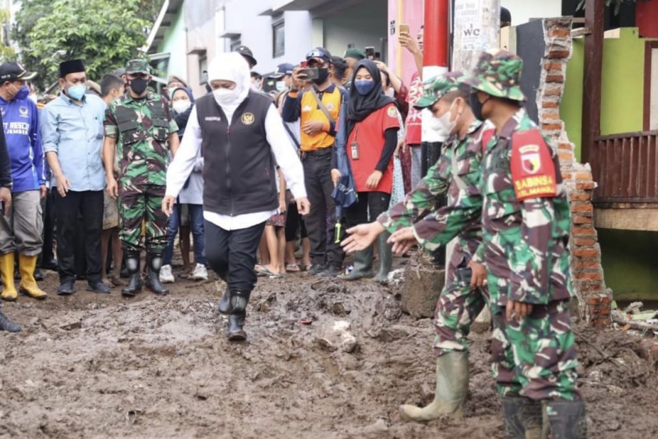 selalu.id - Gubernur Jawa Timur Khofifah Indar Parawansa meninjau wilayah terdampak banjir bandang yang melanda beberapa bagian wilayah di Kabupaten Jember, Senin (10/1/2022) kemarin.