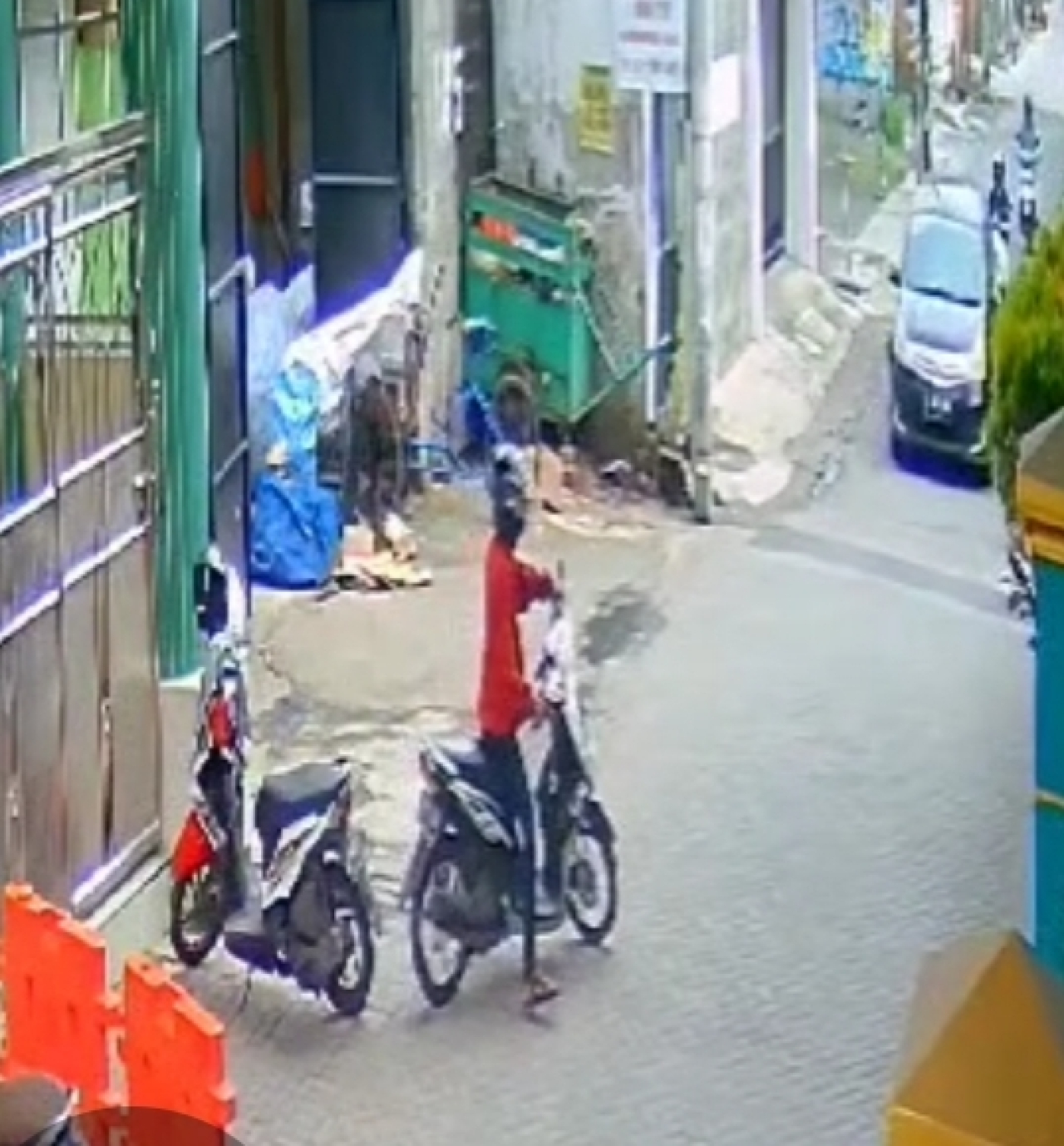 Rekaman CCTV di parkiran masjid menunjukkan pelaku mengenakan kaos polo merah, celana panjang hitam, sepatu hitam, dan helm hitam. Korban mengenakan kerudung dan helm putih. Video menunjukkan pelaku memasukkan tas korban ke bagasi motornya dan kabur setelah korban masuk ke toilet.