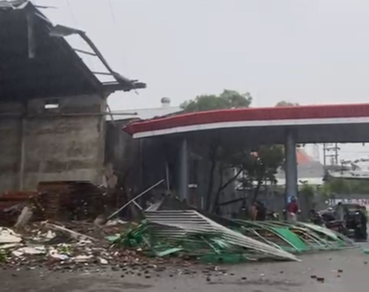 selalu.id – Sebuah bangunan yang berada di Jalan Tanjung Sari, Sukomanunggal, Surabaya, tepatnya dekat SPBU atau Pom Bensin porak poranda akibat angin kencang yang melanda Surabaya, Kamis (13/2/2025).