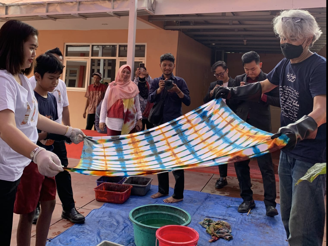 Melalui program DIY Midtown Hotels Indonesia memberikan dukungan penuh, Bersama seluruh perwakilan karyawan yang berasal dari Midtown Hotel Surabaya, Midtown Residence Surabaya, Crown Prince Hotel Surabaya dan Verwood Hotel & Serviced Residence Surabaya dengan seksama mengikuti intruksi dari Pak Leo selaku mentor dalam pengerjaan shibori dari kain sprei bekas yang sudah dipotong – potong seukuran 1x1 meter.